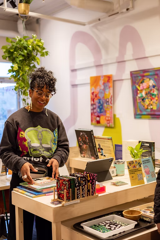 The gallery at Griot Arts highlights the work of local and regional BIPOC artists. Here, the art is meant to be part of the everyday life and spirit of the space. As a whole, the gallery and bookstore are curated to “announce” the visual, literary, and cultural complexity of Black people as an invitation toward healing, communal care, reconciliation, and liberation for all of us.
